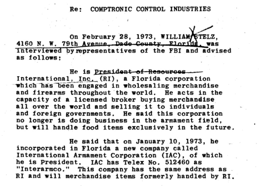Exactly how Interarmco (AKA International Armament Corporation AKA Interarms AKA ARMCO) was founded is a matter of slight discrepancy. The most common version of events is that Cummings himself founded the company, however one CIA document states that while he was involved from the beginning, he didn’t gain controlling interest until later. This document states that Cummings became the principle agent in 1954 and assumed sole ownership in early 1958. Another document refers to a different arms trafficker, William Stelz, incorporating the company about twenty years after it was allegedly founded.