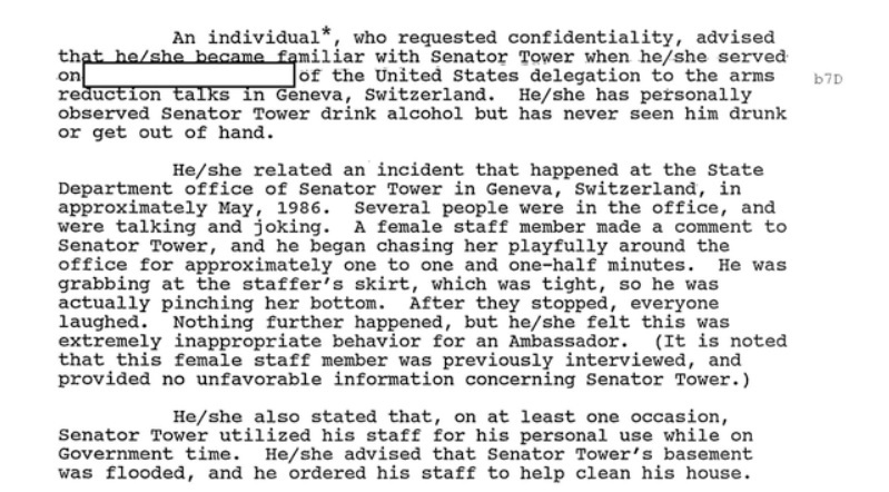 While a recently released copy of John Tower’s FBI file dealt mostly with the background check performed by the FBI, it also includes several important revelations concerning the Senator. While most reviews of his nomination process and the scrutiny that he received focused on allegations of heavy drinking and womanizing …