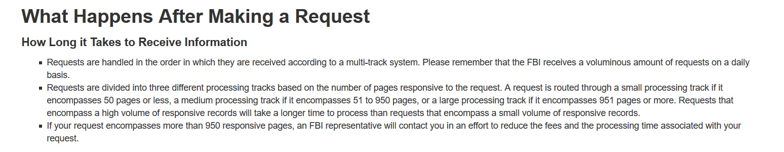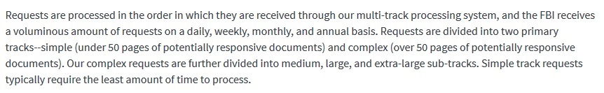 However, according to correspondence the FBI sent on December 8th, the medium track for FOIA requests has been eliminated entirely.