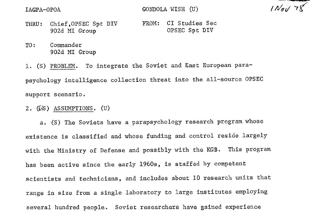 A report produced by the 902nd Military Intelligence group outlines the history of the American and Russian/Soviet psychic programs. According to the document, the Soviet programs had been active since at least the 1960s.