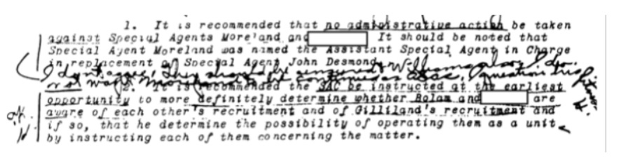 The two Agents concluded their thoughts by stating that they had given Gilliland all the proper instructions regarding secrecy and compartmentalization. They also believed that Gilliland “was honestly mistaken and confused regarding what had actually occurred.” Nevertheless, they were of the opinion that “Gilliland was an excellent prospect for the program … and that he should be retained.”