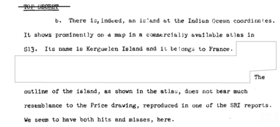 In what was initially described as a “double-blind experiment”, the subject was given the coordinates of a small island. The subject supposedly then drew “an absolutely accurate topographical map of the island” and described what was happening on it.