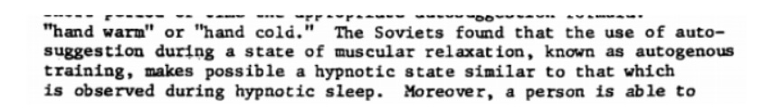 Exactly what is and isn’t suggestology is a bit murky. According to the report, “suggestology is not hypnosis. With this method of conditioning, the individual is always in the waking state.”