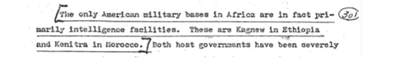 Another section, also excised from the 1974 book, alleged that all U.S. military bases in Africa were primarily there as intelligence facilities.